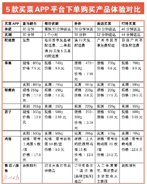 近两年来互联网经济越发红火,不少市民成为线上买菜的忠实“粉丝”。广州日报广经观察栏目此前推出《动手还是跑腿,你家咋买菜?》《超市巨头切入新业态》两篇报道,深入调查消费者宅在家中、动动手指的买菜新操作。面对当前众多的买菜APP,究竟哪个“多快好省”?售后服务怎么样?近期,广州日报全媒体记者尝试在5款买菜APP平台下单购买蔬菜、鸡蛋、水果、肉类等产品,并分别就到货及时性、商品重量、品质、价格以及服务是否到位等多个方面进行了测评。